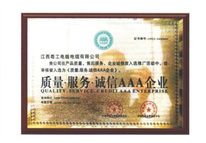 质量服务诚信AAA企业